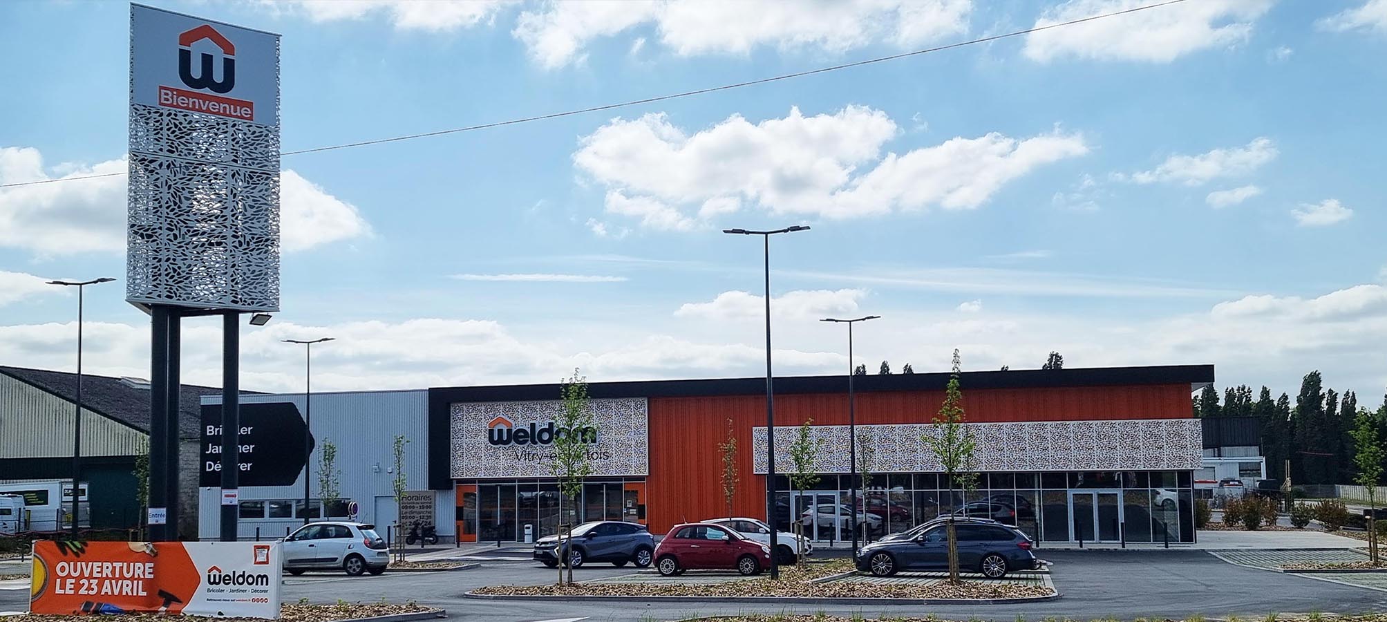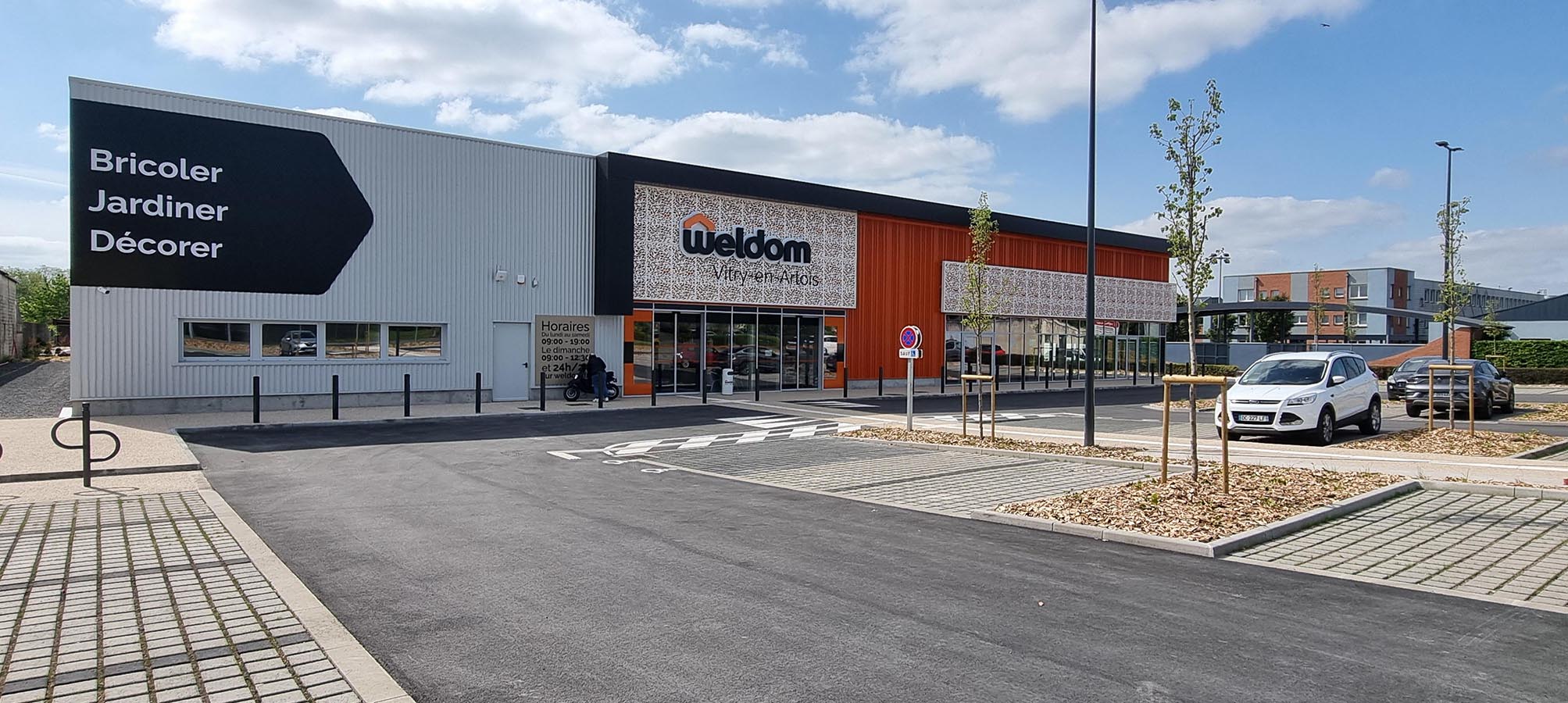Construction d'un village de commerçants - Weldom, cuisiniste et restaurant